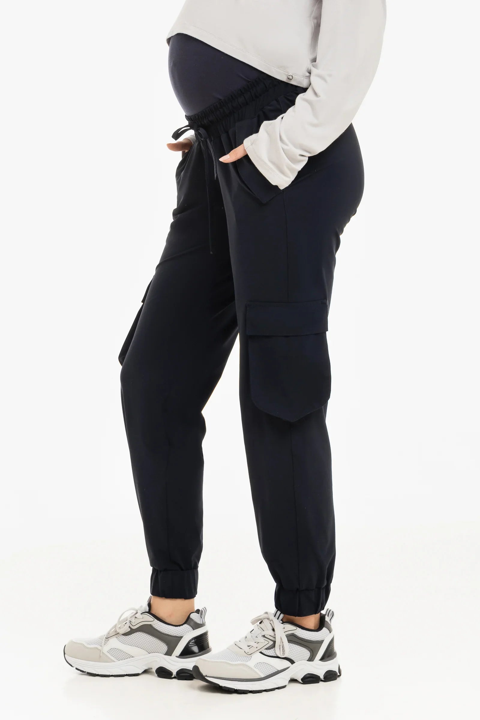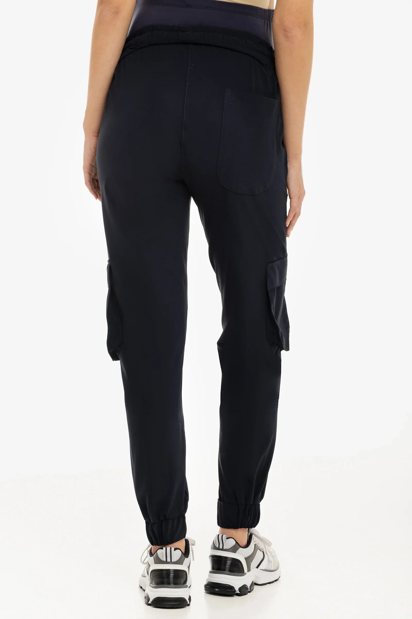 • Lässige Umstands-Cargohose aus elastischem Hightech-Jersey in Dunkelblau
