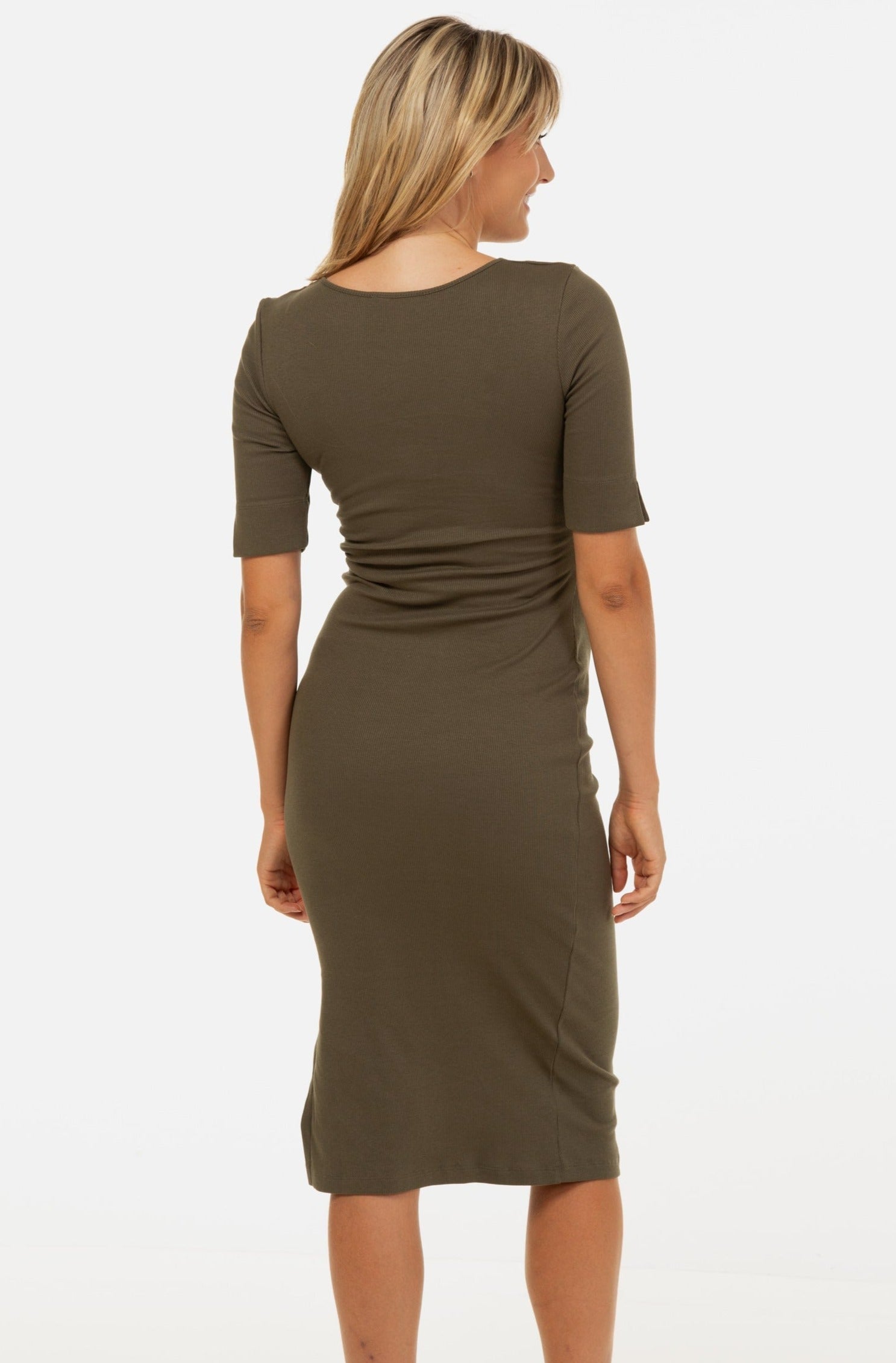 Tailliertes Umstands- & Stillkleid aus geripptem Baumwolljersey – Khaki