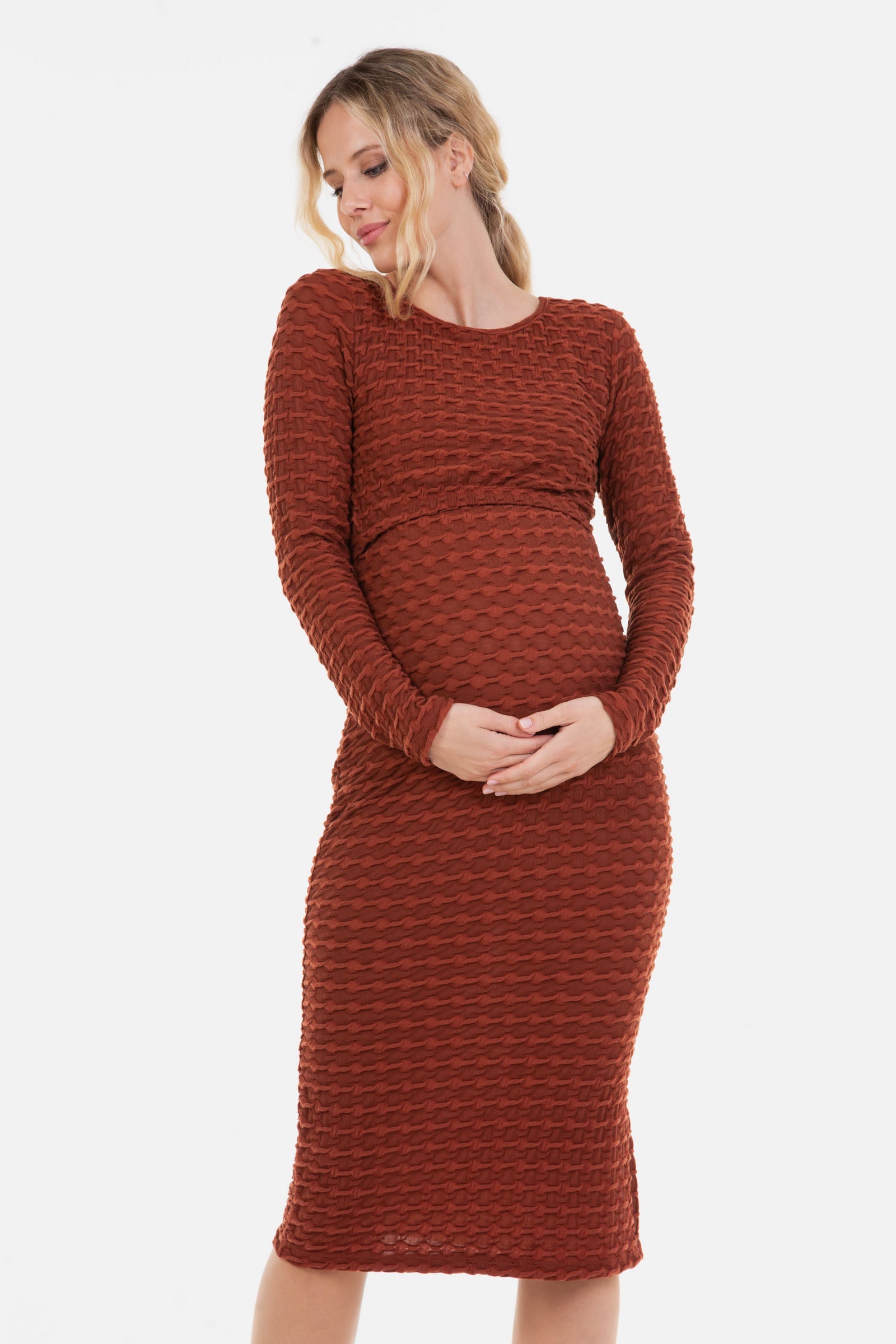 Langes figurbetontes Umstands- und Stillkleid - Kupfer