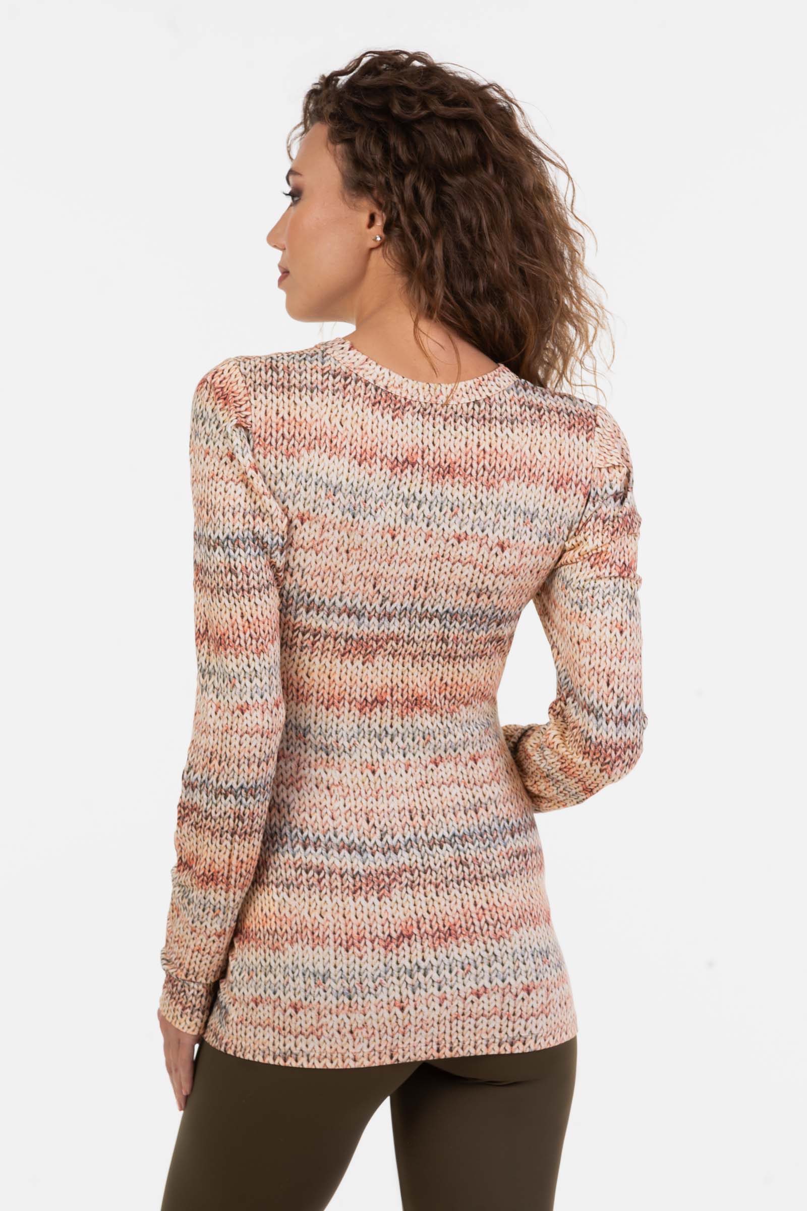 Dies ist eine Viskose-Jerseybluse mit Strickmuster.