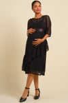 Elegantes langes Umstandskleid aus dunkelblauer Spitze