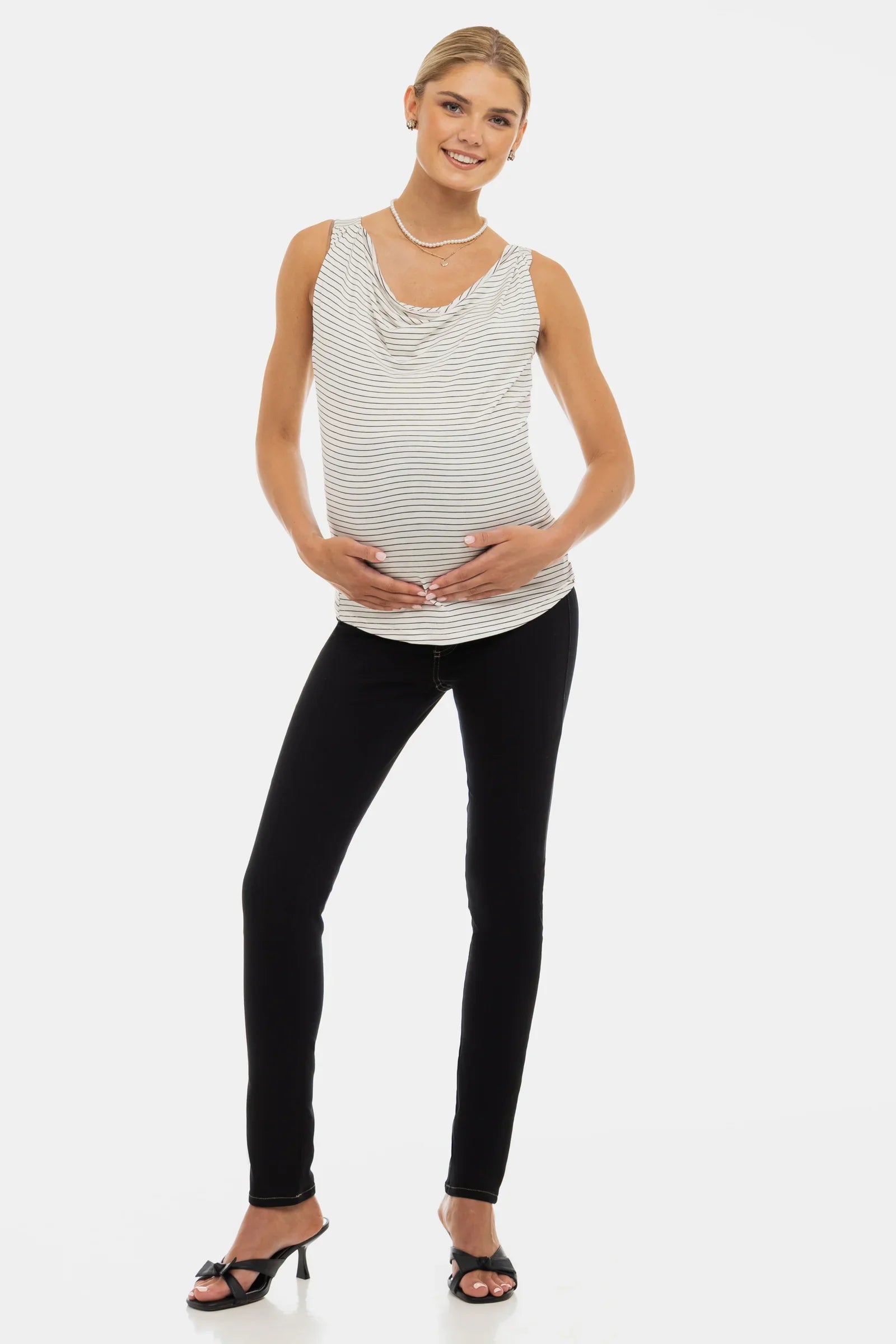 Gestreiftes Umstands- und Stilltop mit Drapé-Ausschnitt