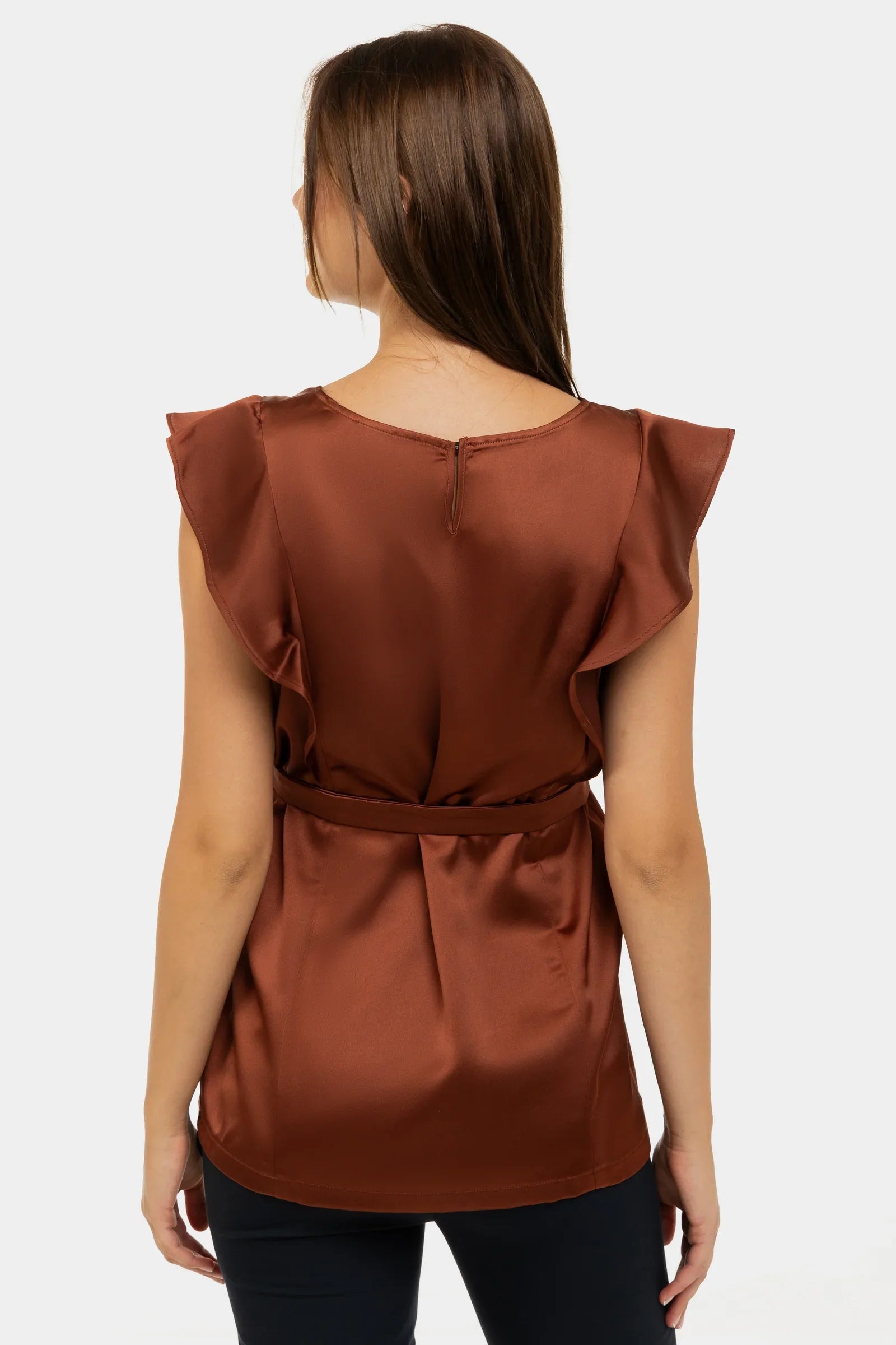 Satierte Umstands- und Stillbluse mit Volantärmeln – Bronze