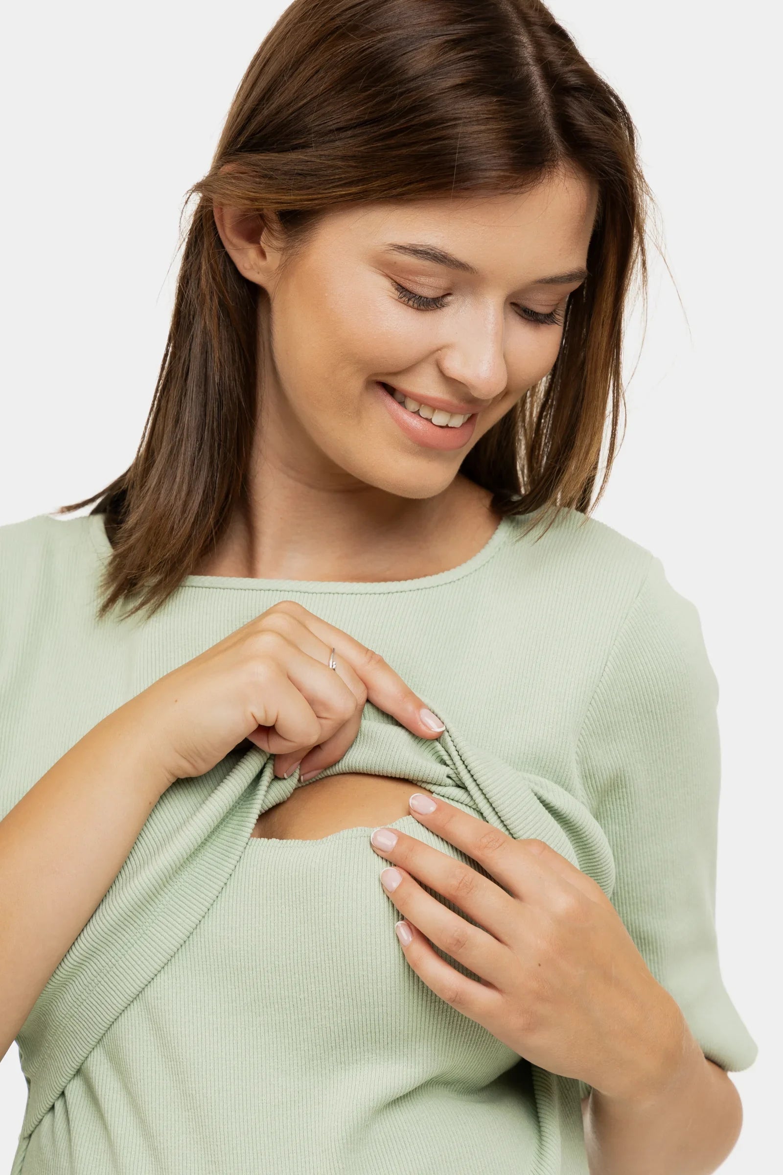 - Umstandskleid aus geripptem Baumwolljersey in Mint
