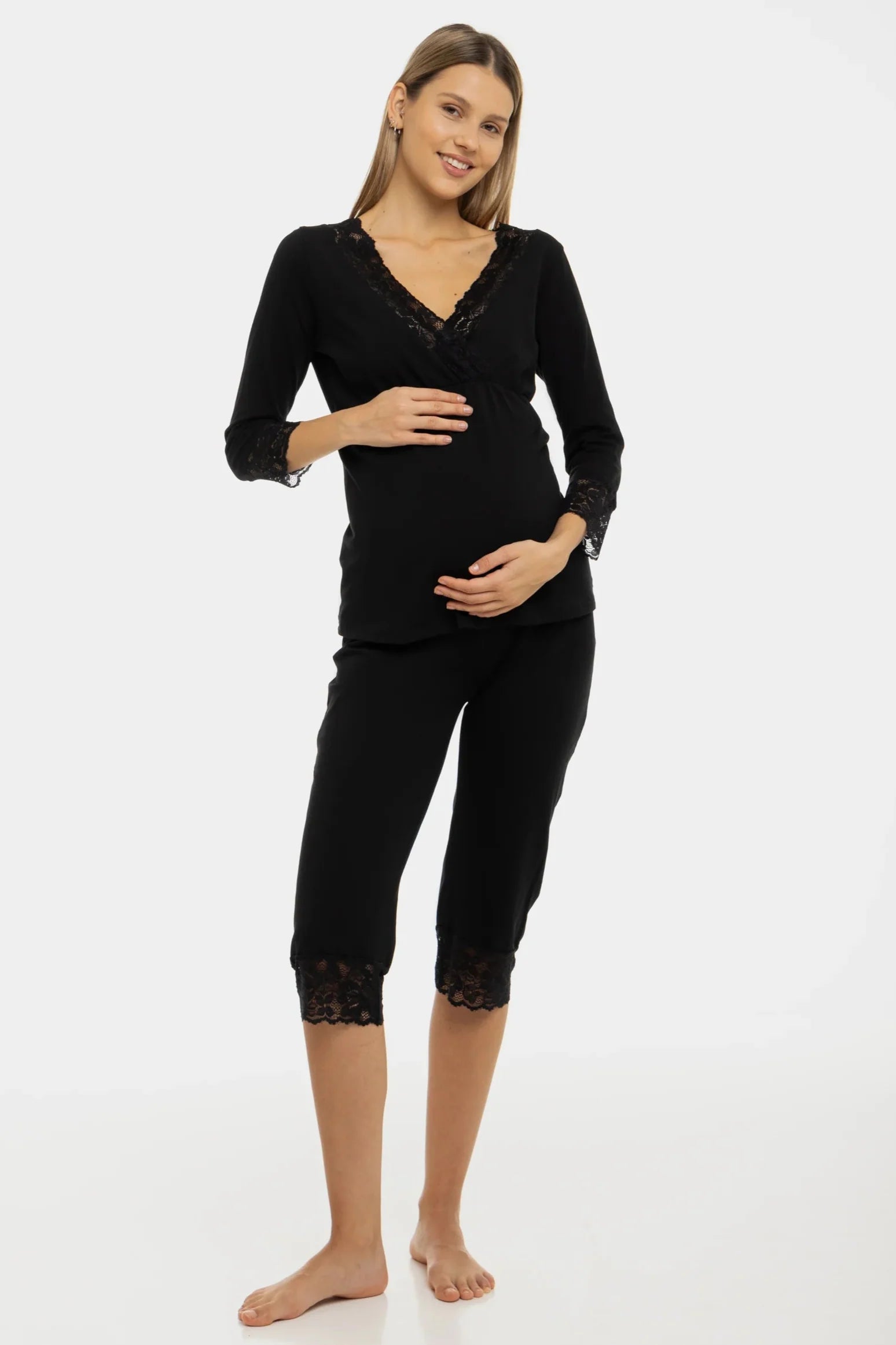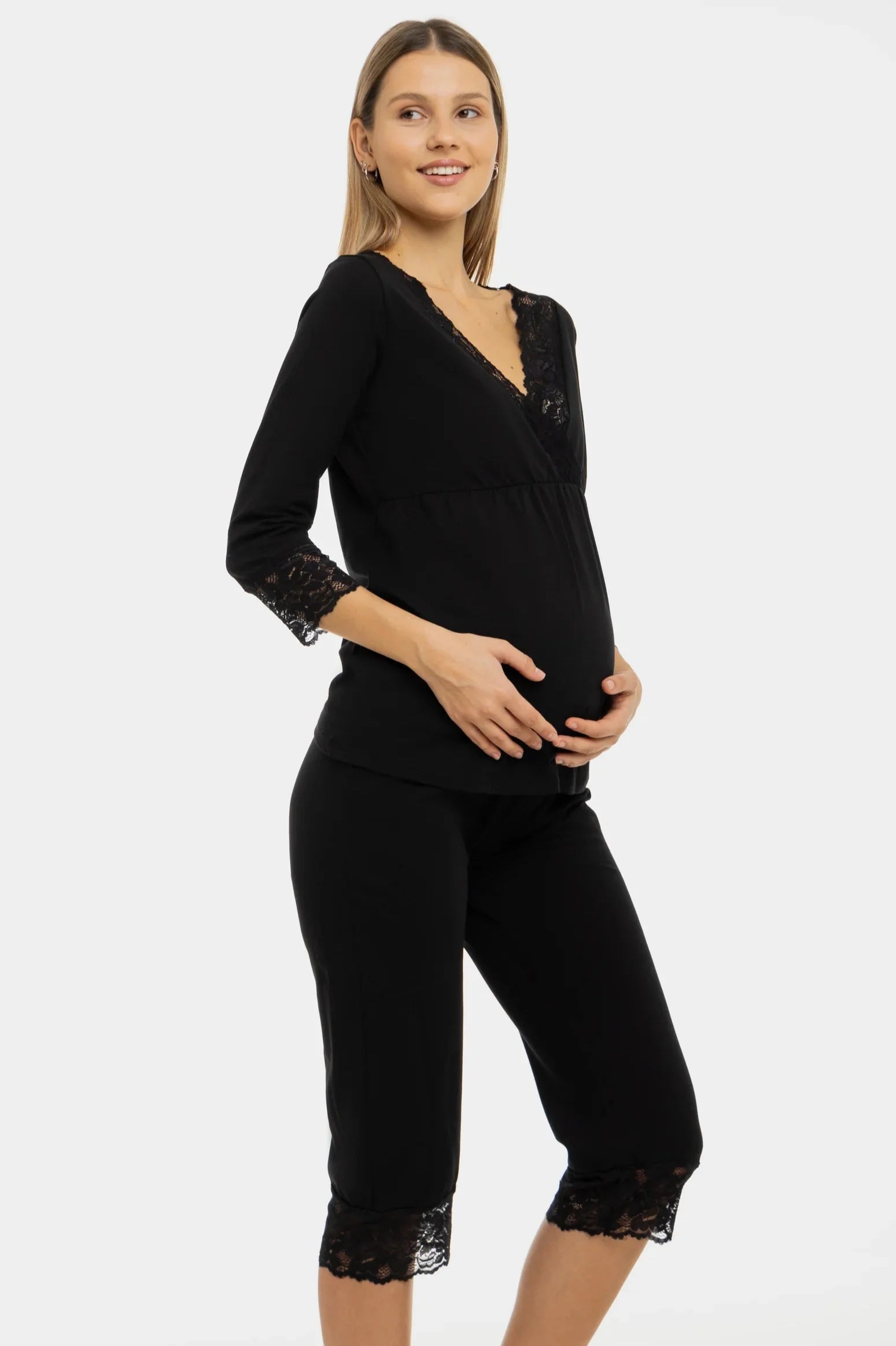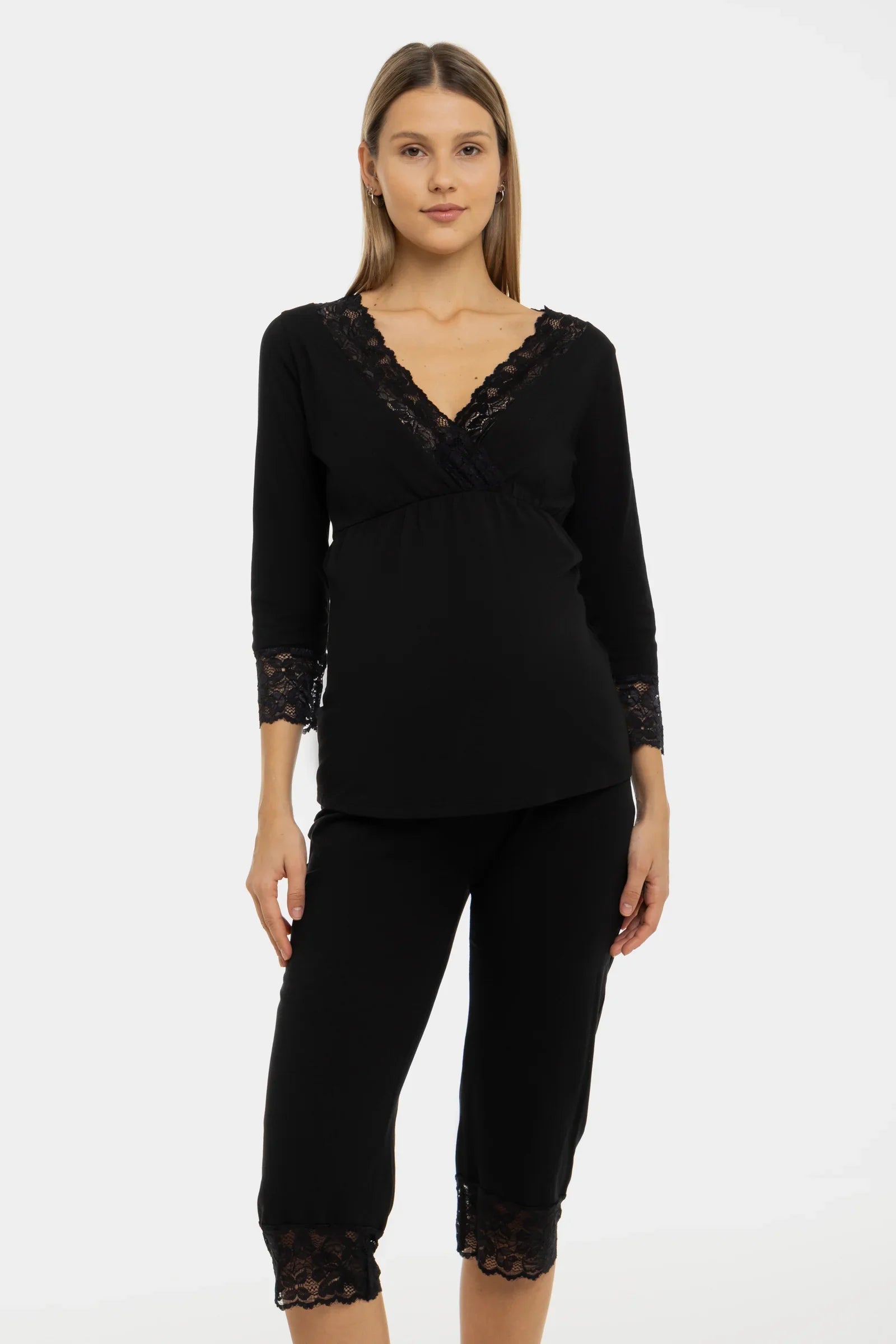 • Umstands-Pyjama aus ultraweichem und bequemem Baumwolltrikot in Schwarz