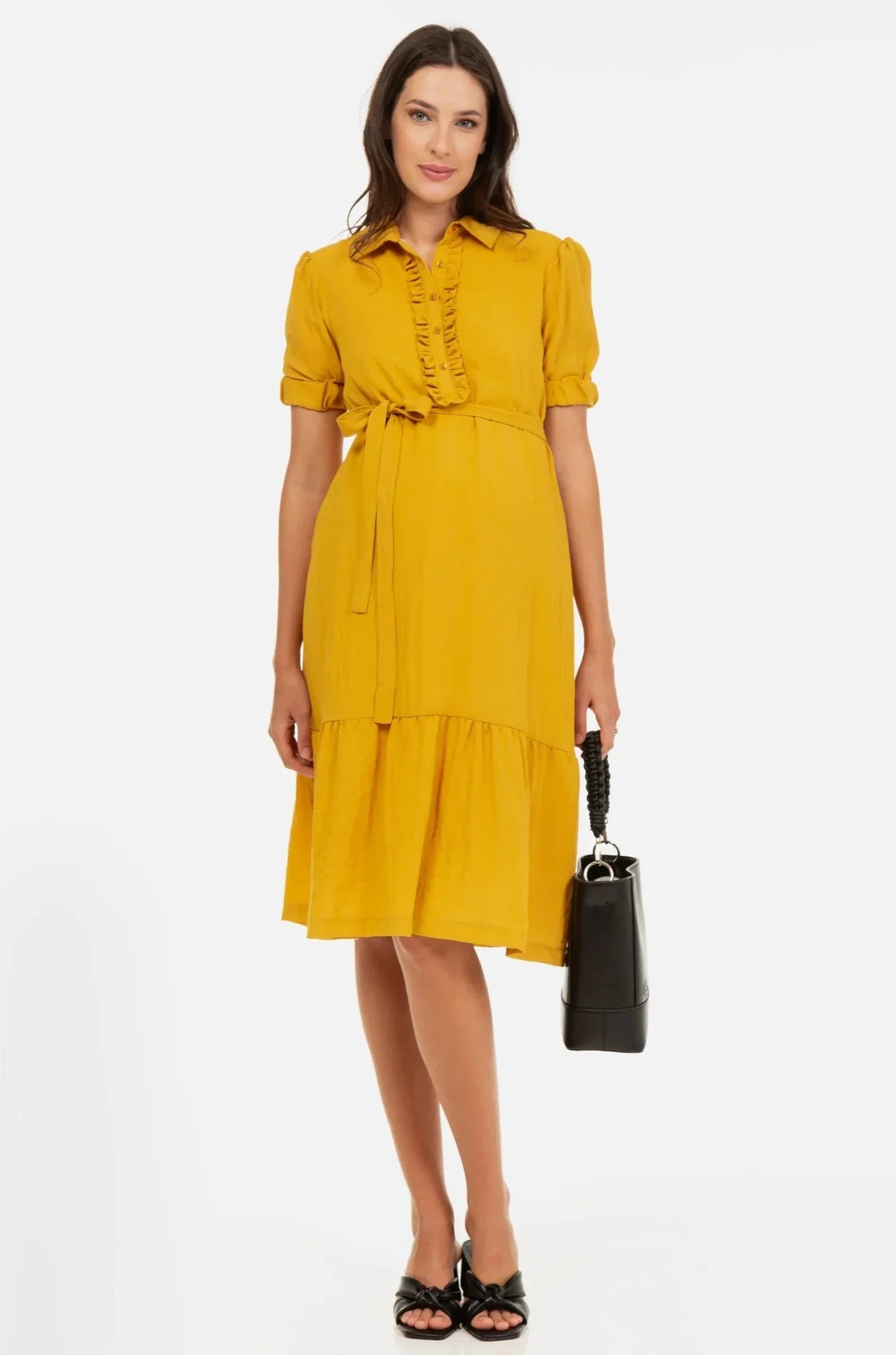 - Abnehmbarer Gürtel zur Betonung der hohen Taille