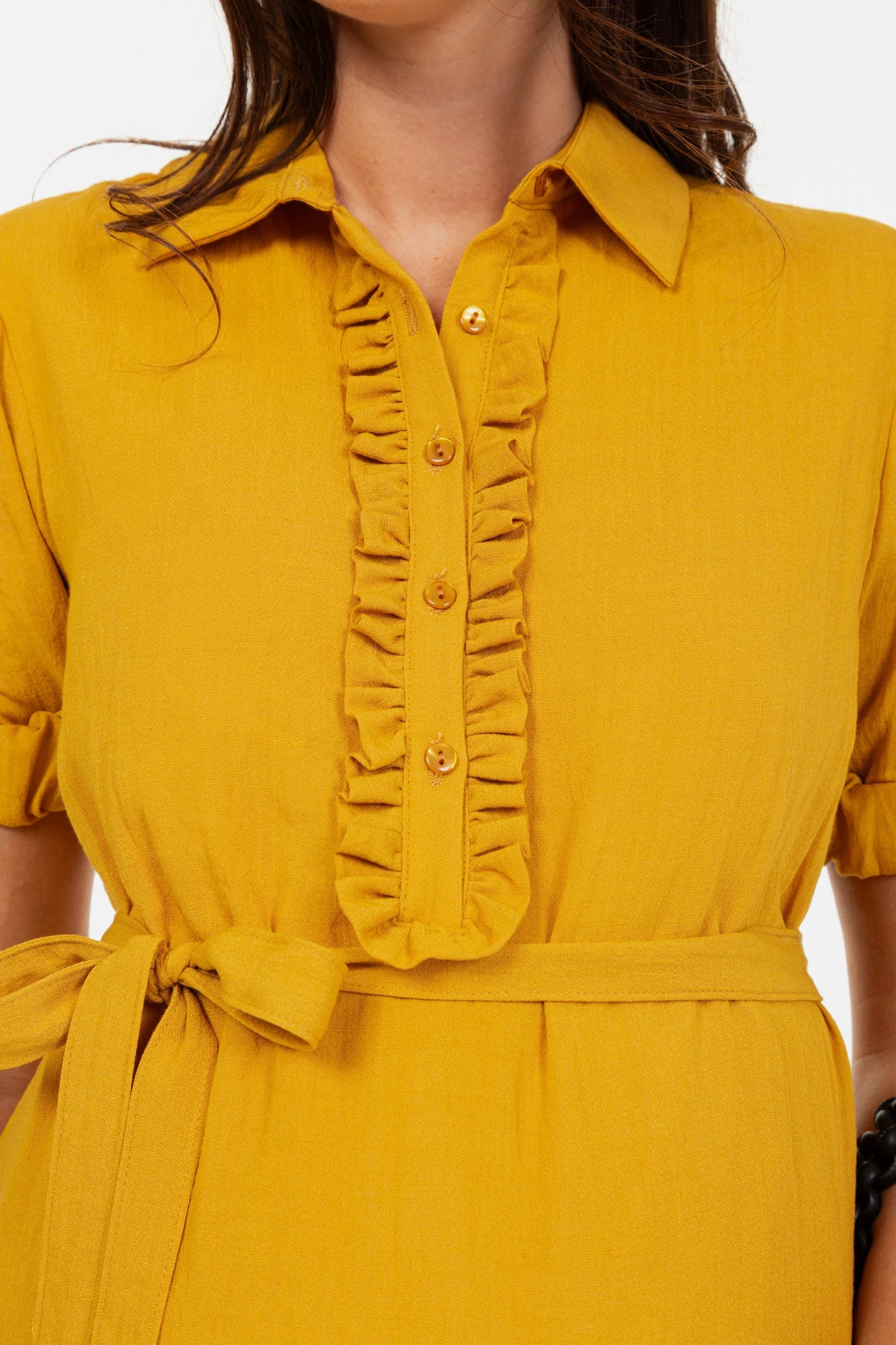- Knopfleiste vorne mit Rüschen an den Seiten